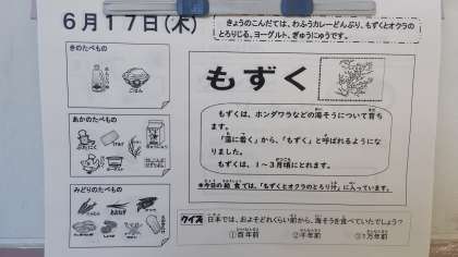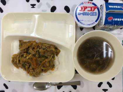 本日の献立は、和風カレー丼、もずくとオクラのとろり汁、牛乳、ヨーグルトです。