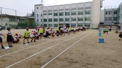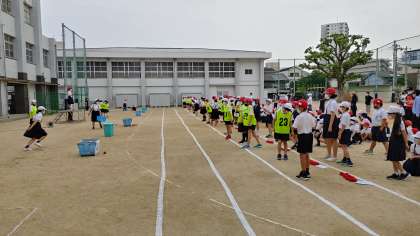 1〜6年生のともだち班に分かれてみんなで「たまいれ」を楽しみました。