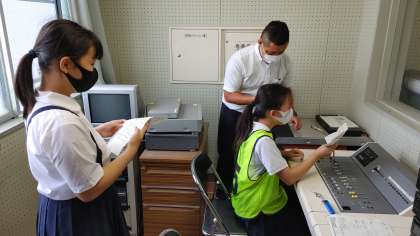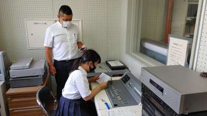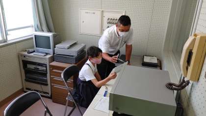 朝方までの雷雨のため運動場は使えませんので、放送を使っての児童集会です。