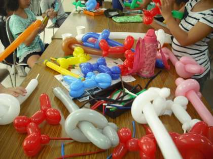 今日の午後から行われたわくわく講座は、「バルーンアート」でした。風船を使って、「アンパンマン」や「いぬ」、「剣」などの作り方を講師の先生から教わっていました。参加者は各自好きな色の風船でいろいろな作品を作って持ち帰りました。たくさんのおみやげ出来ましたね。今日の講師先生は、玉出小学校教育協議会(玉小はぐくみネット)でコーディネーターをされている辰巳久子さんをはじめ地域にある「バルーンアートファンクラブ」のみなさんにお願いいたしました。ありがとうございました。明日の「わくわく講座」は、午前中に「俳句と短歌」、午後に「親子バレーボール」です。