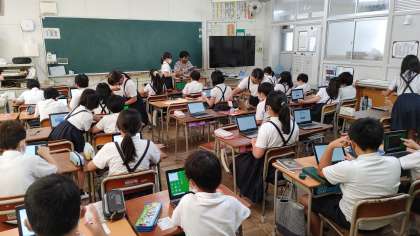 本日4年生の教室をのぞくと、さっそくタブレットを使って「デジタルドリル」にログインする練習をしていました。