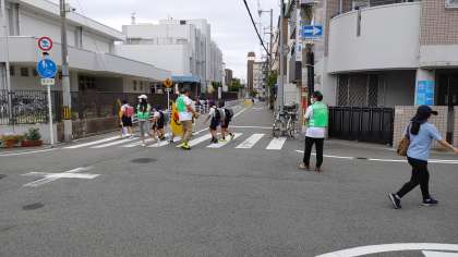朝からの曇り空の中、子どもたちが集団登校してきました。子どもたちを見守ってくださる皆様、本日もありがとうございます。