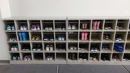 帰りの雨に備えて、1年生では長靴で登校した児童もいます。