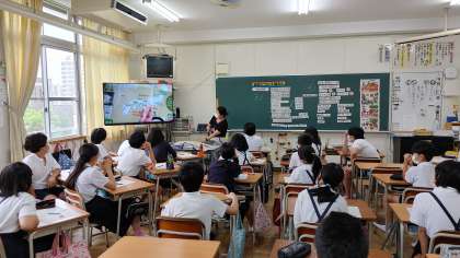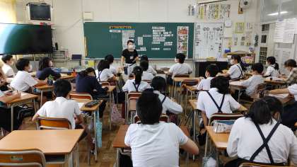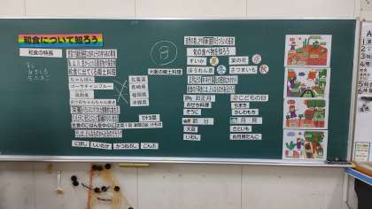 今日も南津守小学校栄養教諭の岡崎先生に来ていただいて、「和食について知ろう。」という内容の授業をしていただきました。