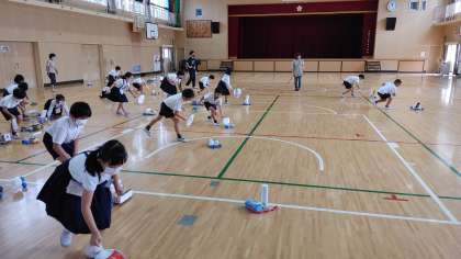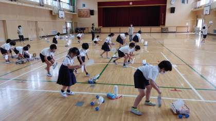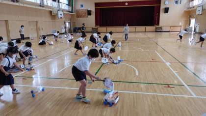 2年生は本日4時間目の生活科の時間に、先週の土曜日に続いて講堂で「ヨットカーレース」を行いました。