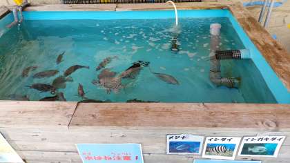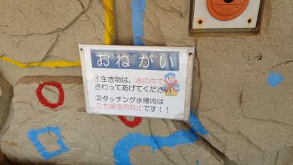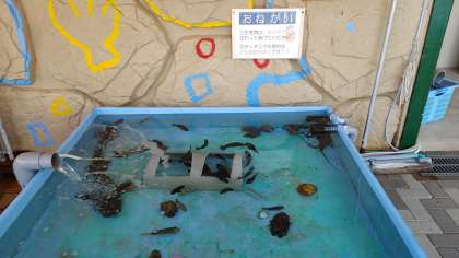 水槽の中を泳ぐ魚とのふれあいコーナーです。