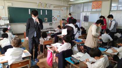 いつもとは違う緊張感の中、2年2組の子どもたちはしっかりと学習していました。