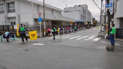子どもたちの集団登校を見守ってくださる皆様、雨の中ありがとうございます。