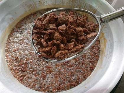 くじらの竜田揚げの調理の様子です。