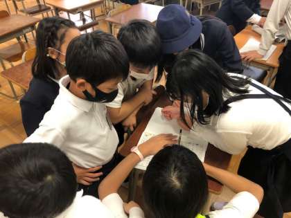 午前中と同じように縦割り班ごとに校内を回ってクイズを解いていきます。