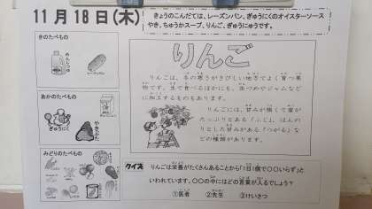 今日は季節の果物りんごがデザートにつきます。とても美味しいです。