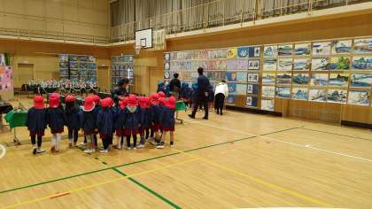 本日、玉出幼稚園、玉出東保育園、玉出西保育園の児童の皆さんが、玉出小学校の作品展を見に来てくれました。