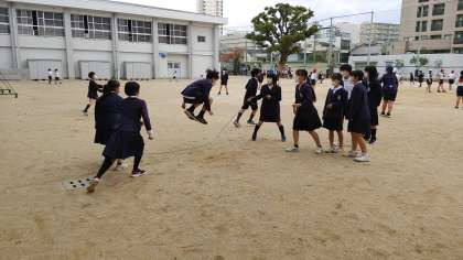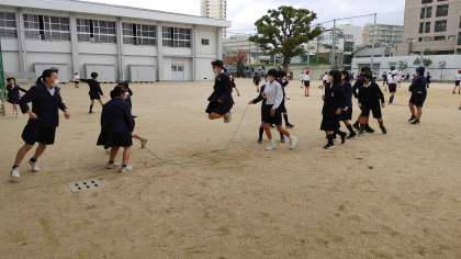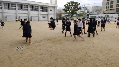 来週の「長なわ週間」に向けて、6年生の皆さんがなわとびの練習を始めています。