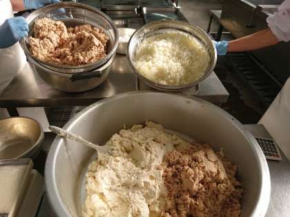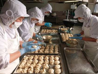 本日の献立の豆腐ハンバーグは、調理員さんたちの手作りです。
