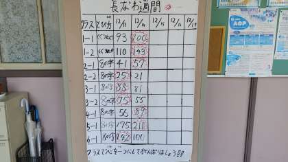 昨日12月15日(水)の2時間目後の休み時間の「長なわ週間」の取り組みの様子です。