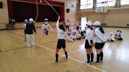 さすが6年生、ダブルダッチを上手に跳んでいます。
