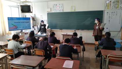 続いて、4時間目の5年生の「西成区英語コミュニケーション事業」による英語の授業の様子です。