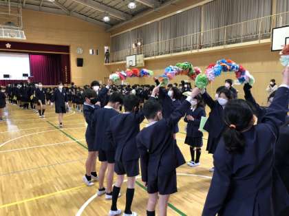 入場と同じく、5年生のアーチを通って、卒業生が退場しました。
