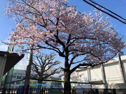 校庭の桜の花も満開となりました。