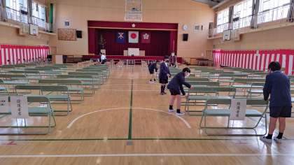新6年生のみなさんが、きれいにいすを並べてくれました。