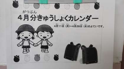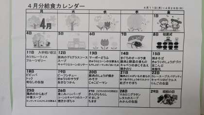 給食カレンダーを掲示しています。1か月分と毎日の献立を掲示しています。