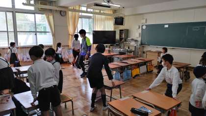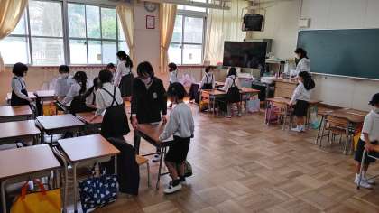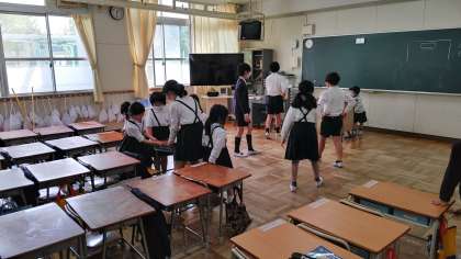 今週は、給食の配膳だけでなく、1年生の掃除も6年生の皆さんが手伝ってくれています。