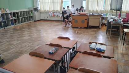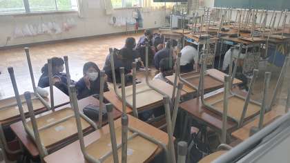 本日2時間目、10時より、不審者が学校に侵入したことを想定しての避難訓練を行いました。