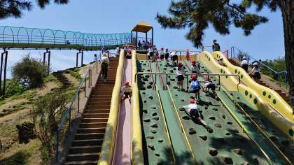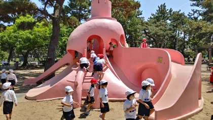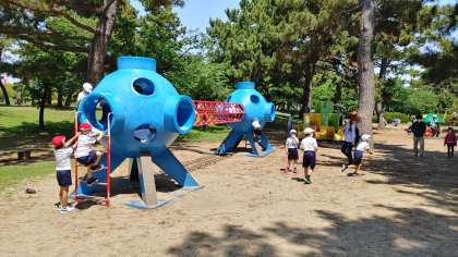 次は、遊具でともだち班で遊びます。