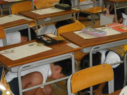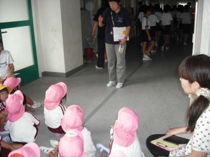 本日、11時から大阪府全域を対象に一斉防災訓練がありました。本校も屋上設置スピーカー(防災行政無線)から放送されたお知らせに合わせて避難訓練を行いました。地震、津波を想定した訓練に、隣接の玉出幼稚園とも連携した合同訓練に取り組みました。阪神大震災や東日本大震災の教訓を忘れず、地震発生時に一人ひとりがどのように行動したらよいかを学びました。