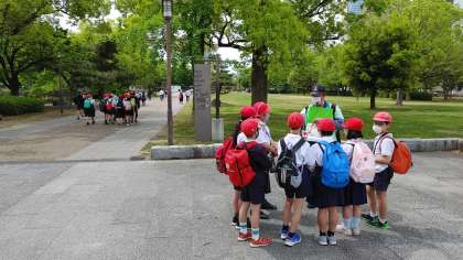 大阪城公園内を、NPO法人 大阪観光ボランティア協会の方々にガイドしていただきます。