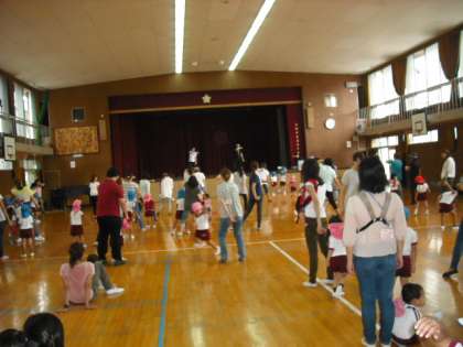 本日、玉出小学校の講堂(体育館)でお昼の時間帯(12時25分〜13時30分)に親子健康体操が行われました。小学校の大きな体育館で幼稚園の子どもたちと保護者の方が親子のふれあいを大切にすることをねらいに家庭でもできるスキンシップをインストラクターの先生からたくさん教わっていました。来年度、玉出小学校に入学する予定の子、保護者の方も来ていたかな?