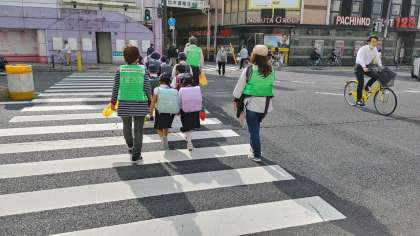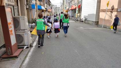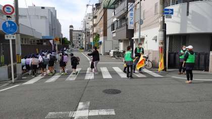 今日も、たくさんの方々に見守られて、子どもたちが安全に集団登校しています。