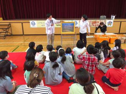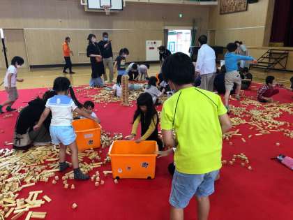 そのあと、これらのつみ木は、ヒノキの間伐材から作られていることを学びました。