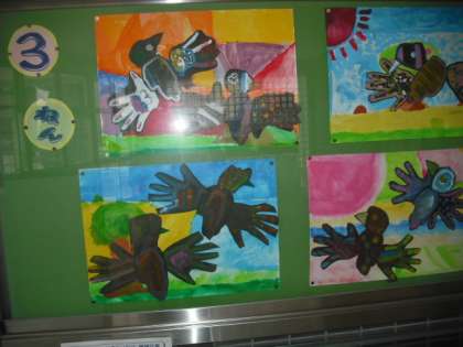 2学期が始まり、玄関掲示も新しくなりました。9月の学校行事、運動会の作品がきれいに飾られています。また、3年生の作品(はばたけ手)も掲示されています。学校へお越しの折はぜひご覧頂けたら幸いです。