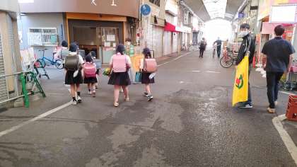 毎日の「見守り隊」の皆さんに加えて、PTAの皆さんも児童の交通安全を見守ってくださいました。