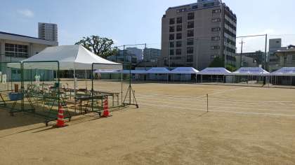 本日は暑くなりそうですので、児童席にもテントをたてました。