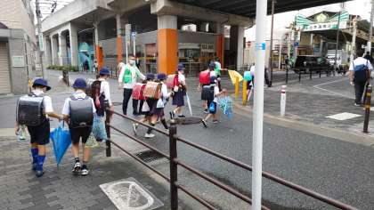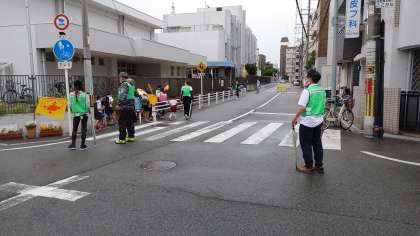 玉出の町のたくさんの方々が、集団登校を見守ってくださっています。