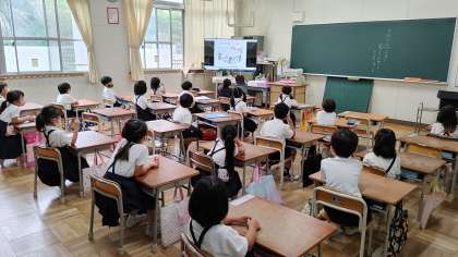 1時間目は、全学年とも、区役所からいただいたDVD「災害から命を守るために」視聴による防災学習です。
