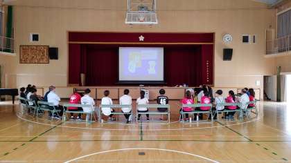 玉出地域の防災リーダーの方々に来ていただき、教職員全員が、心臓マッサージとAEDの実技訓練を受けました。
