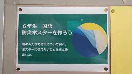 6年生の皆さんが、国語科で取り組んだ「防災ポスターを作ろう」を玄関に掲示していますので、ご来校の際には是非ご覧ください。