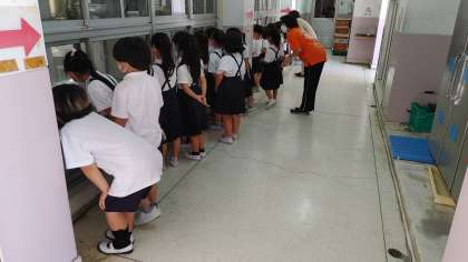 「どうやって、あんなにたくさんの給食をつくっているのかな?」子どもたちは興味津々です。