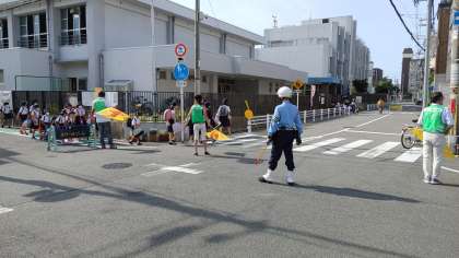 今日は、警察官の方も子どもたちの登校の安全を見守ってくださいました。
