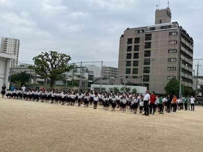 昨日は猛暑のため延期となりましたが、本日2時間目後の休み時間に「150周年記念品の全校写真撮影」を行いました。