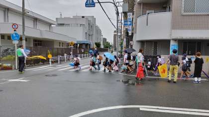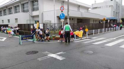 今日も、たくさんの方々に見守られて子どもたちが集団登校してきました。