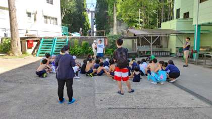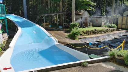 いよいよ水着に着替えて、ウォータースライダーと魚つかみです。