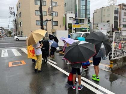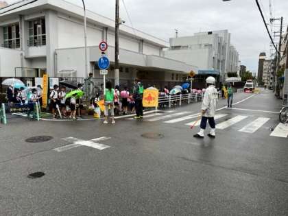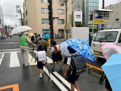 たくさんの方々に見守られて、子どもたちは安全に集団登校することができています。