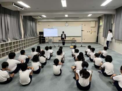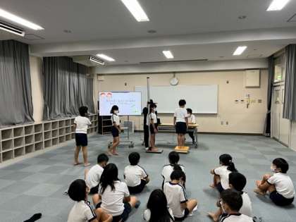 養護教諭の松永先生による「自分でできる救急処置を知ろう」と題しての研究授業が行われたのちに、発育測定を行いました。