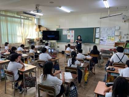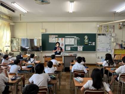 写真は、上から2時間目の4年1組、3時間目の4年2組の様子です。