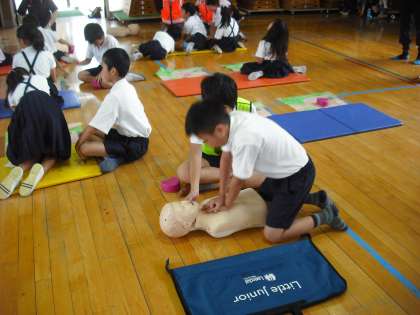 講堂では、水消火器、バケツリレー、救助訓練などを体験しました。図書室では、阪神大震災の映像を見て、実際の地震の恐ろしさを実感しました。多目的室では「人とのつながり」の大切さをお話しいただきました。コミュニティは大切なことです。でもそのことはみんなわかっているのです。つながりをどうつくるのか、それを今、子どもも大人も考えないといけません。