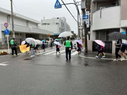 子どもたちの集団登校を見守ってくださる皆様、雨の中をありがとうございます。